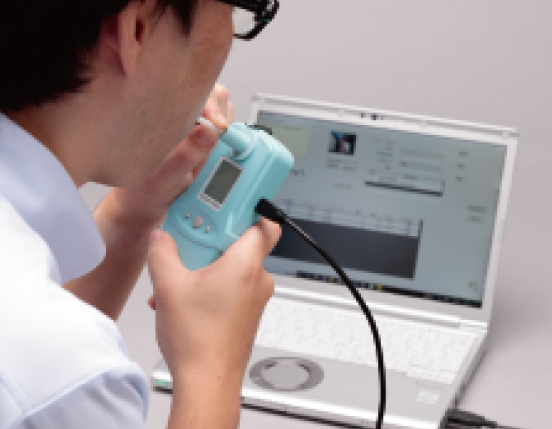 本体に測定結果(測定値、 ドライバーID、日時、入庫時・ 出庫時・中間)を2,500件まで 保存。保存データは付属のソフト でPCに転送できます。